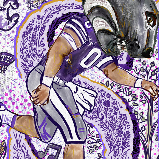 KU Jayhawk Wave the Wheat Art: University of Kansas Sketches Canvas Print