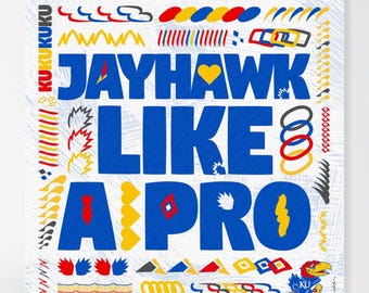 KU Jayhawk like a Pro Word Art: Kansas Canvas Print