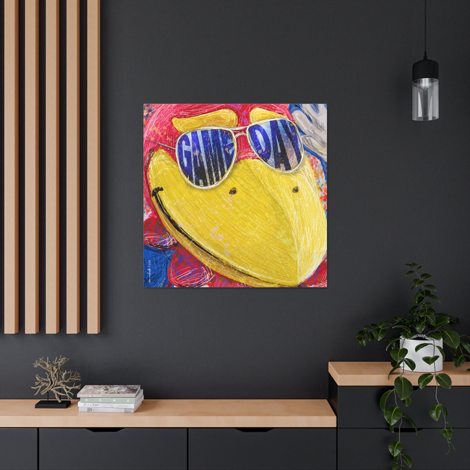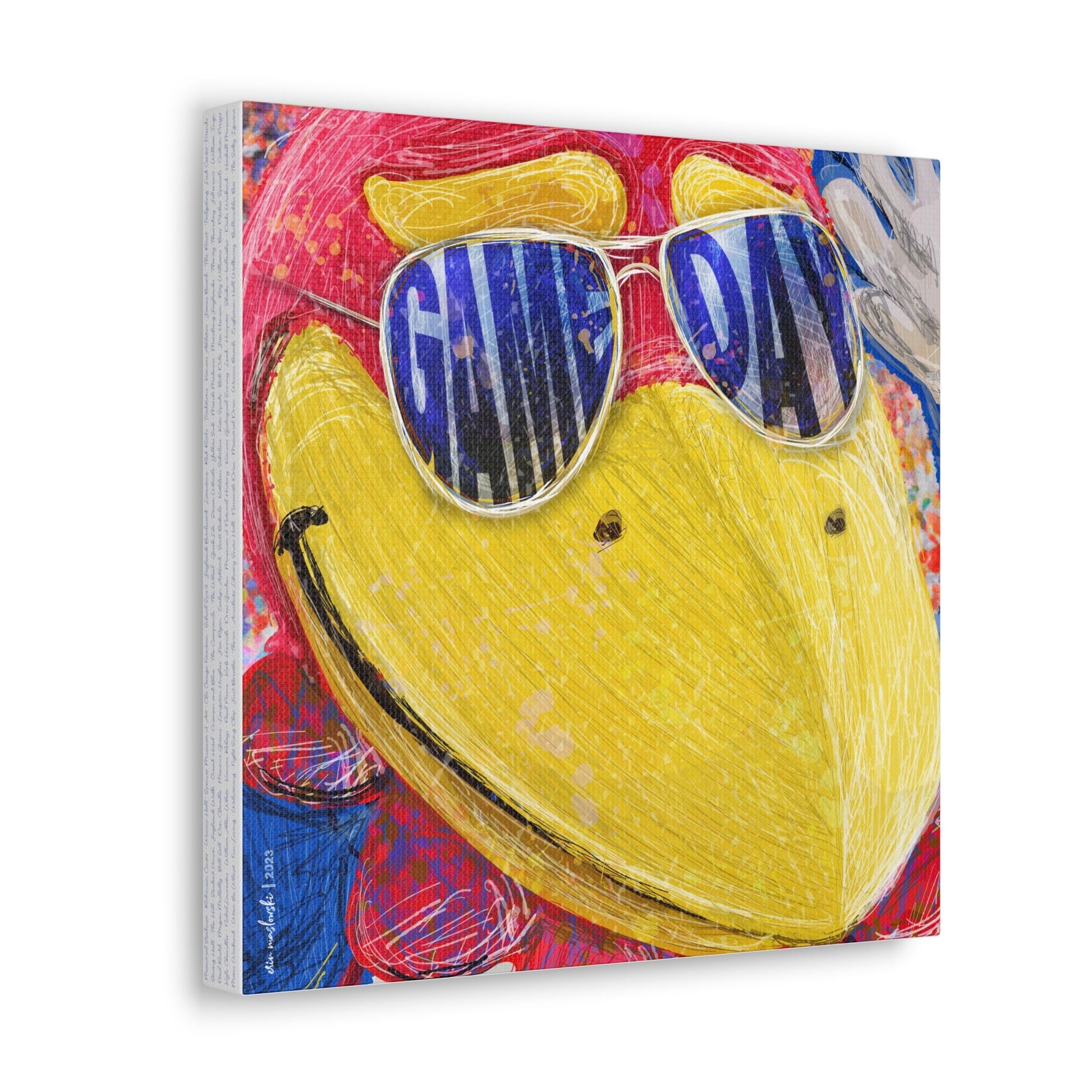 Jayhawk | Game Day: This tailor-made illustration by Erin Maslowski is a close-up of the Kansas Jayhawk rocking shades that shout “Game Day” louder than a halftime cheer. A visual reminder of the camaraderie and the Jayhawk spirit that binds us together, proving that even our mascot knows how to throw some shade in style.