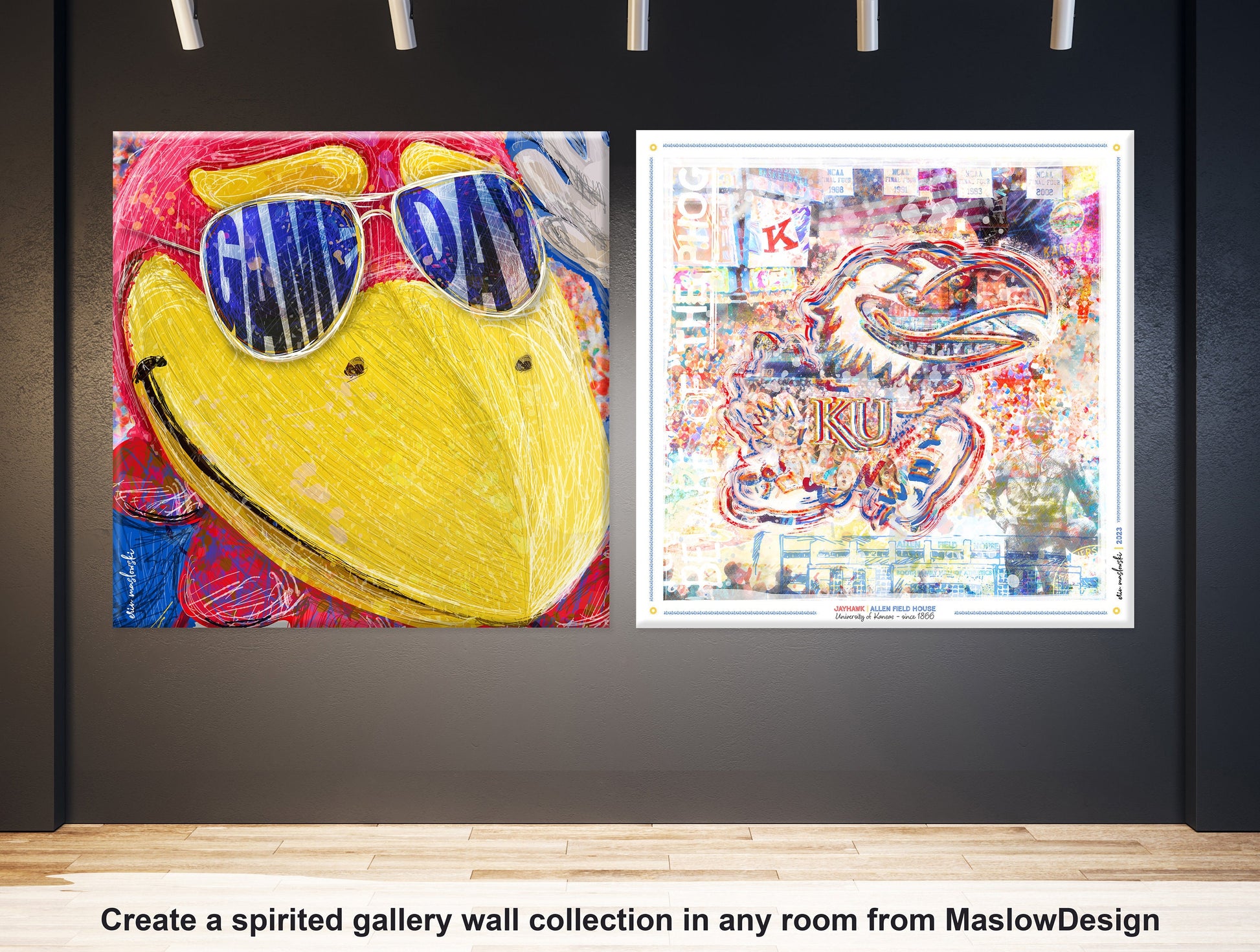 Purchase a single Jayhawk or acquire many to create a distinctive spirit gallery wall.