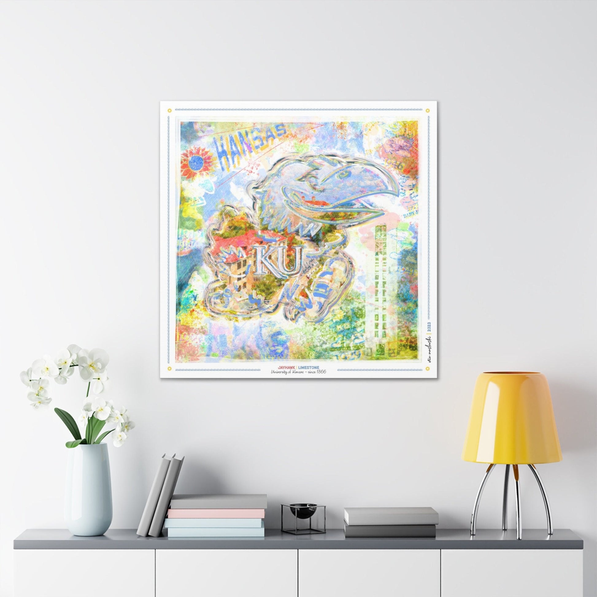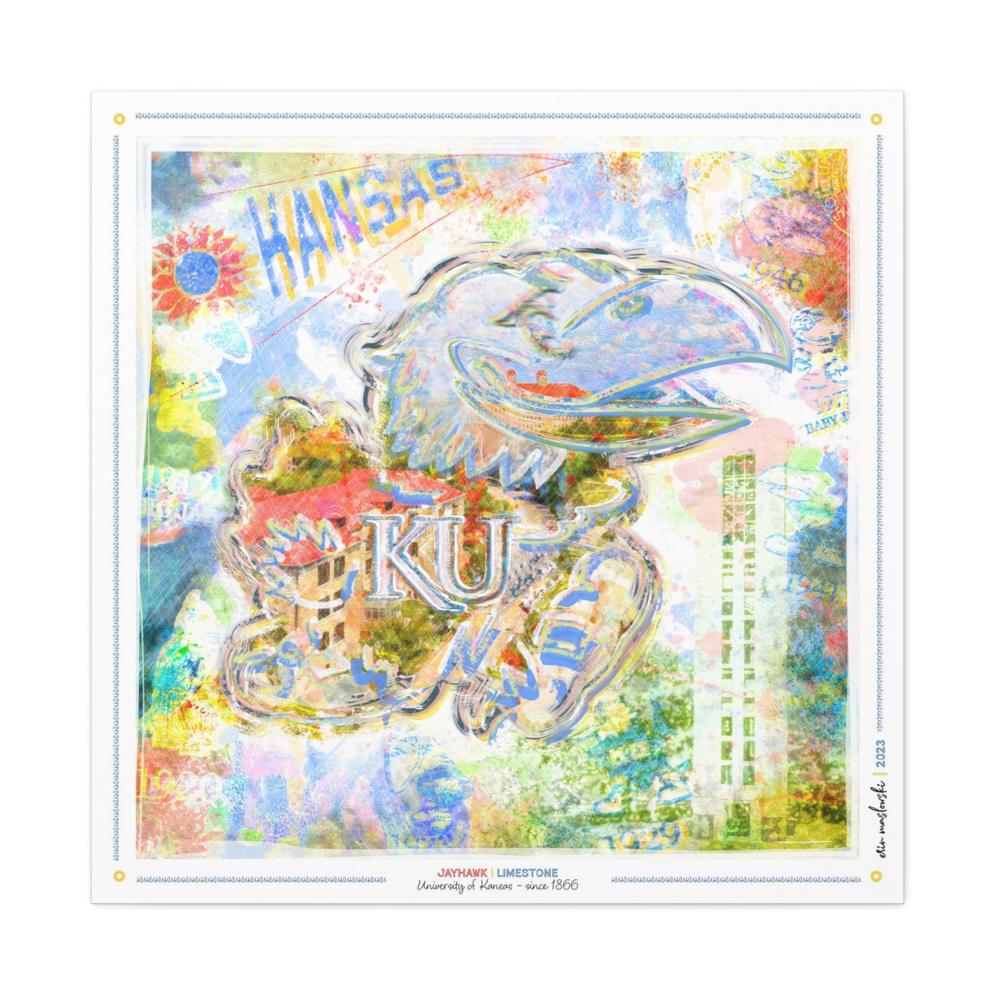 Jayhawk | Limestone | Kansas | KU | Abstract Painting | Canvas Print | No Frame Needed