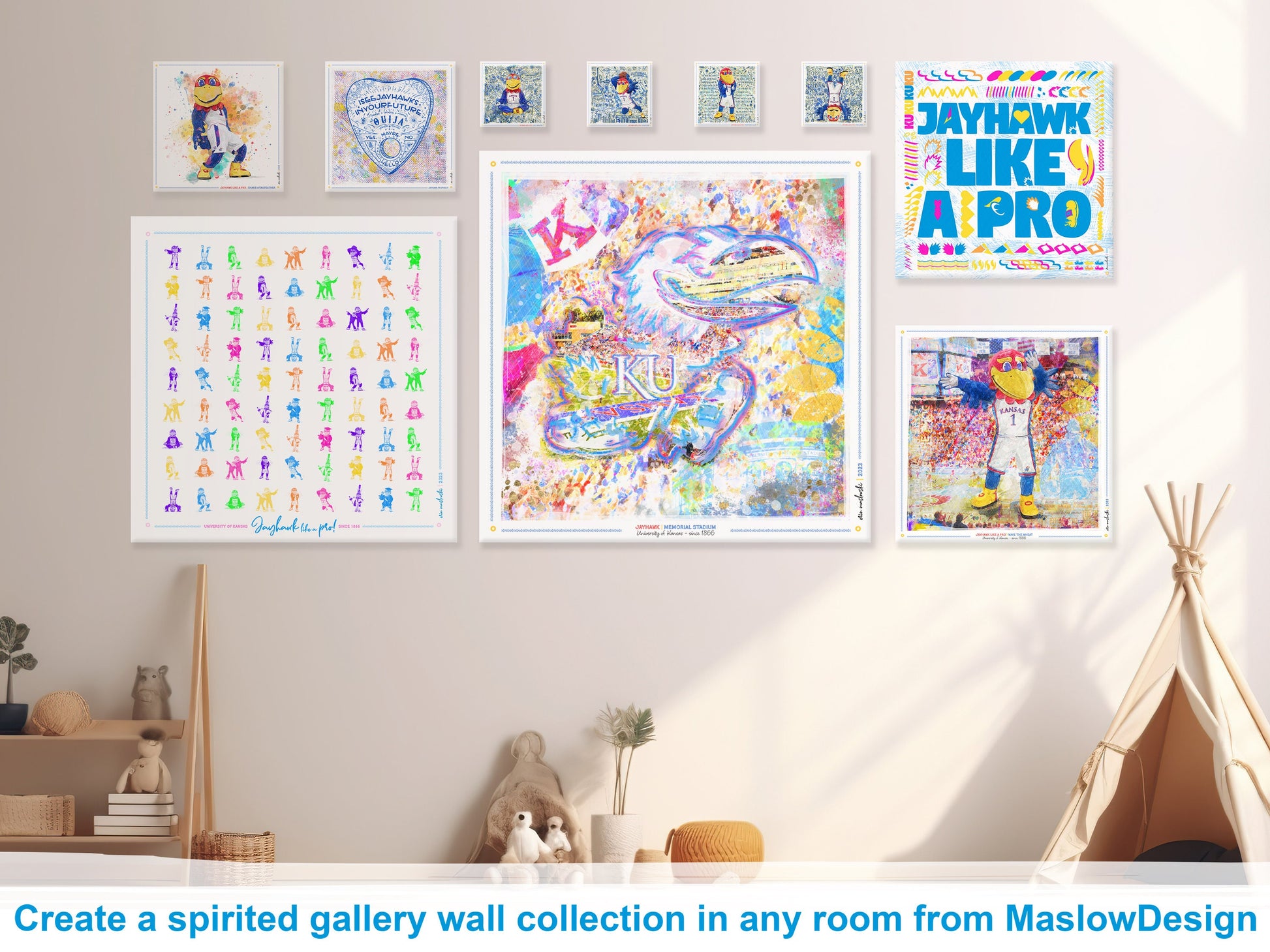 Purchase a single Jayhawk or acquire many to craft a distinctive spirit gallery wall.
