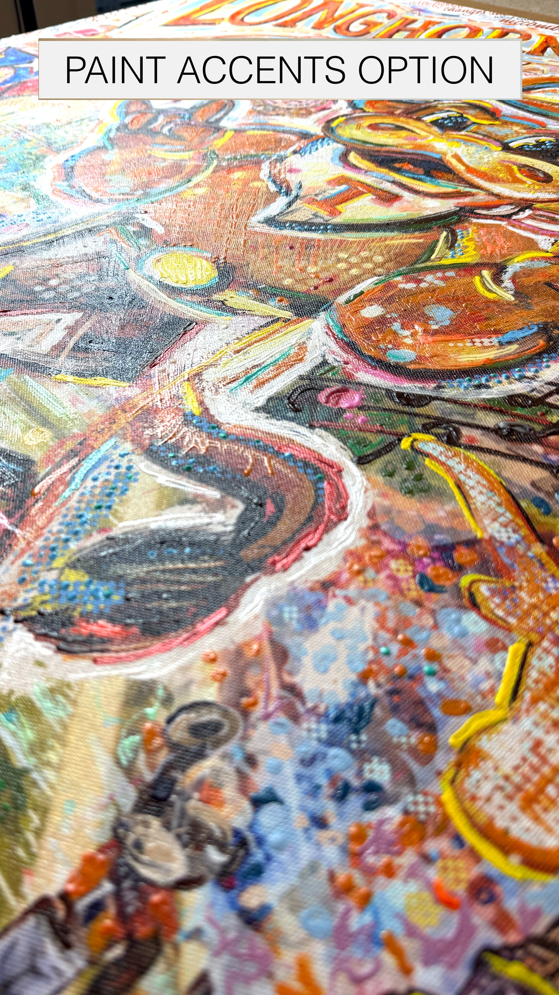 Want that wow factor? Upgrade to Paint Accents and Erin will hand-apply thick, textured paint, matching up to 30 colors to bring your Bevo to life with depth and dimension. 🖌️✨