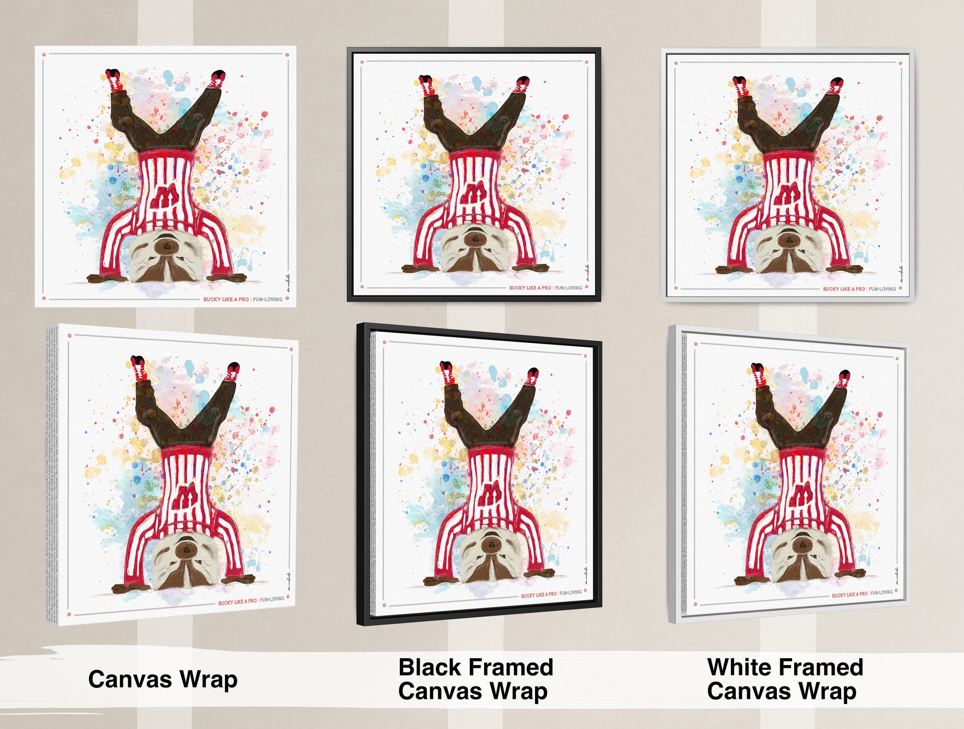 UW Bucky Badger Headstand Art: Wisconsin Fun Loving Canvas Print