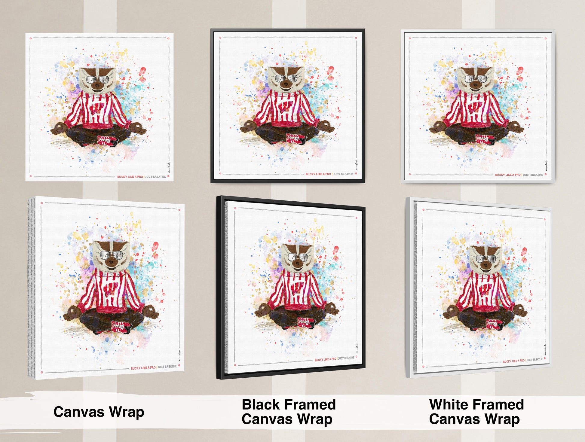 Bucky like a Pro | Just Breathe: This custom illustration encourages mindfulness in the face of life's myriad challenges. Bucky Badger in this pose reminds us of the strength, balance, and unity that mindfulness can bring to our academic, athletic, and transitional journeys at the University of Wisconsin.