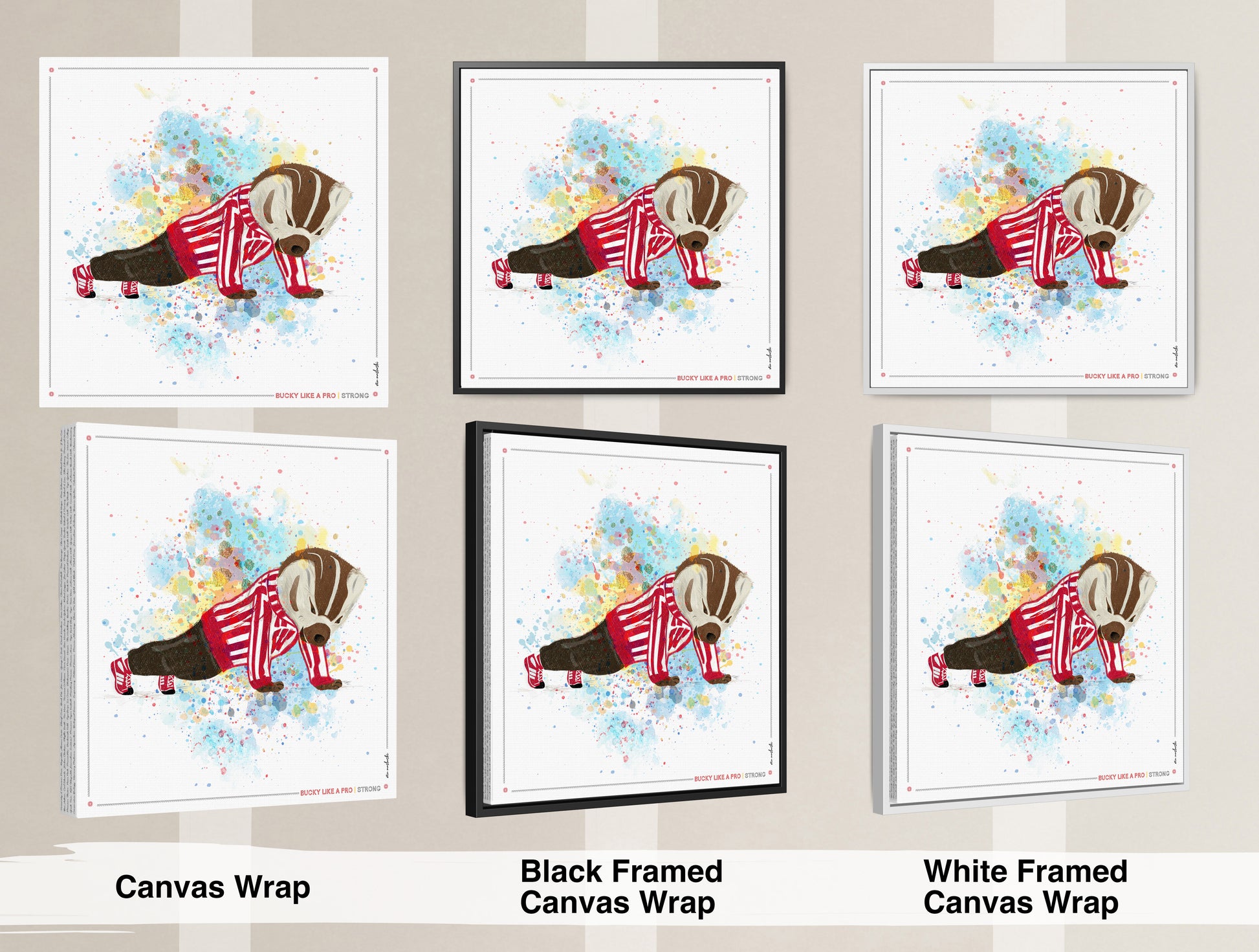 UW Bucky Badger Push-Ups Art: University of Wisconsin Strong Splatter Canvas Print
