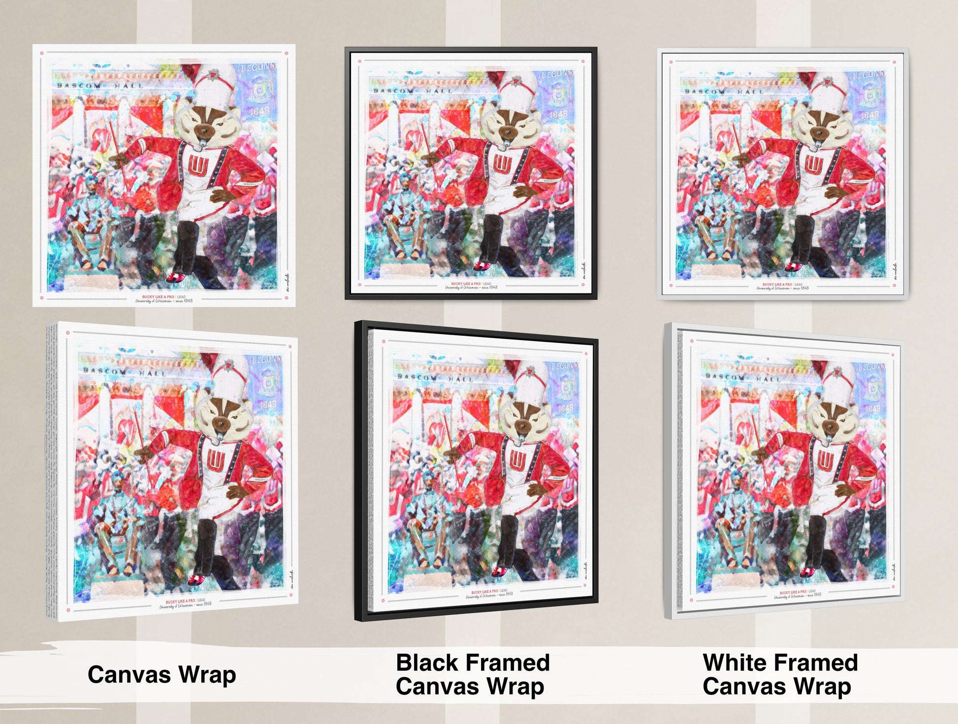 Bucky Like a Pro | Band Leader | University of Wisconsin Bucky Badger Art Print: In this mixed-media Bucky Badger illustration, artist Erin Maslowski captures the pride, leadership, and spirit of the University of Wisconsin. 🦡❤️🤍